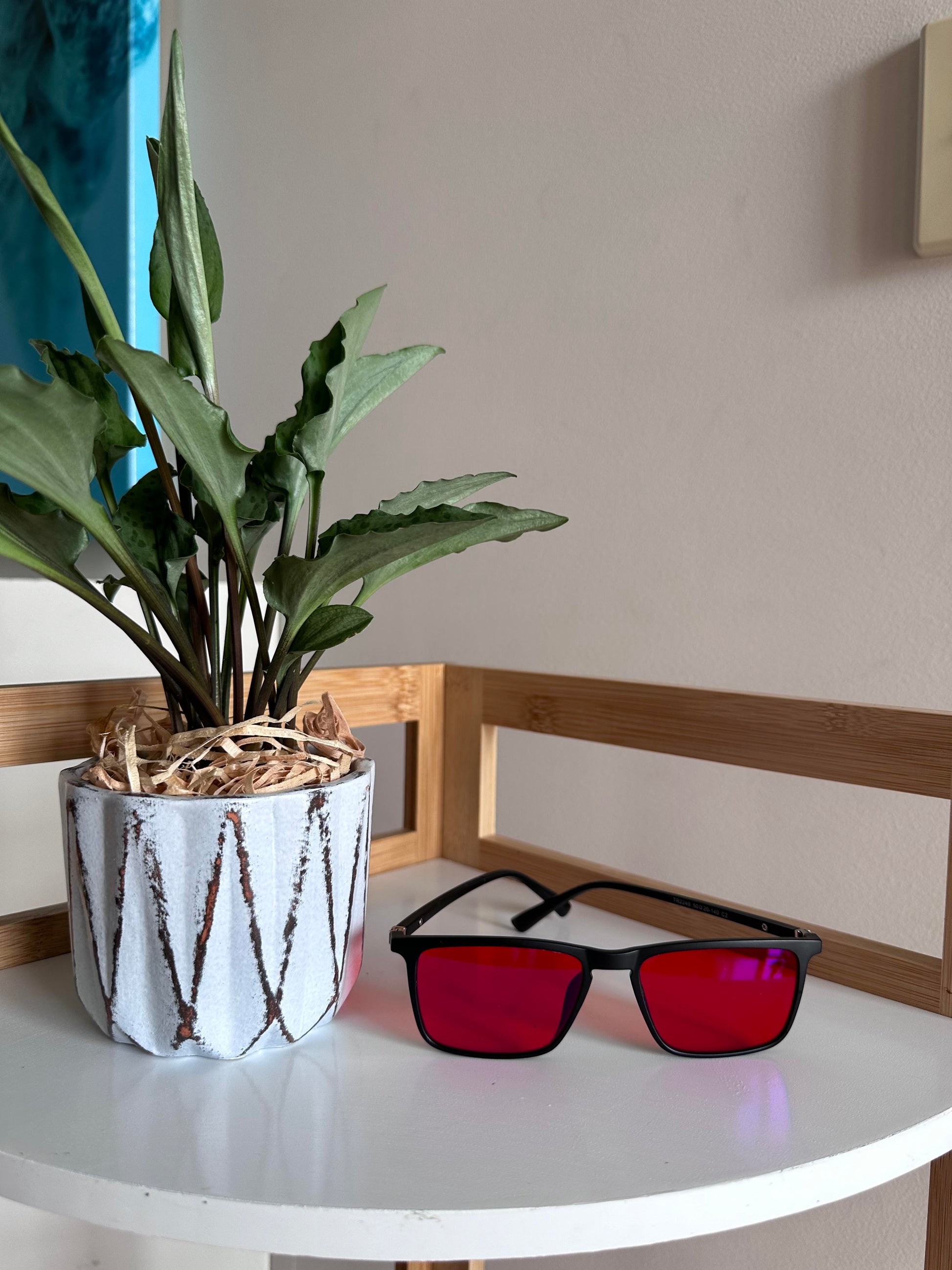 The high-quality optical red lenses featured in our glasses effectively block 100% of blue and green light. This specific red lens are designed to be worn at night time.